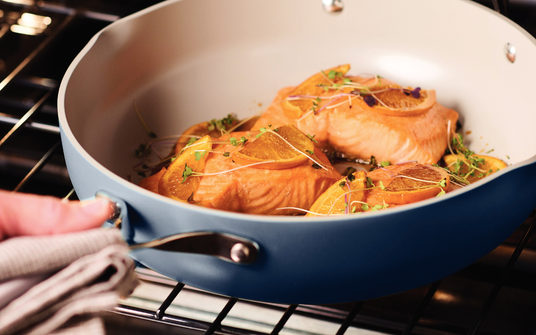 It's oven-safe up to 400° F/204° C and dishwasher-safe.
