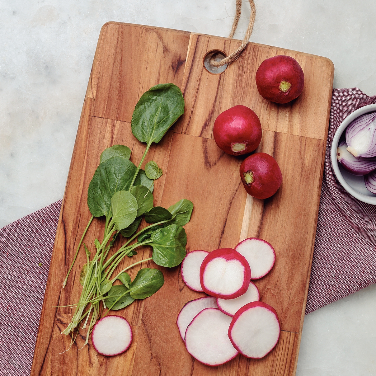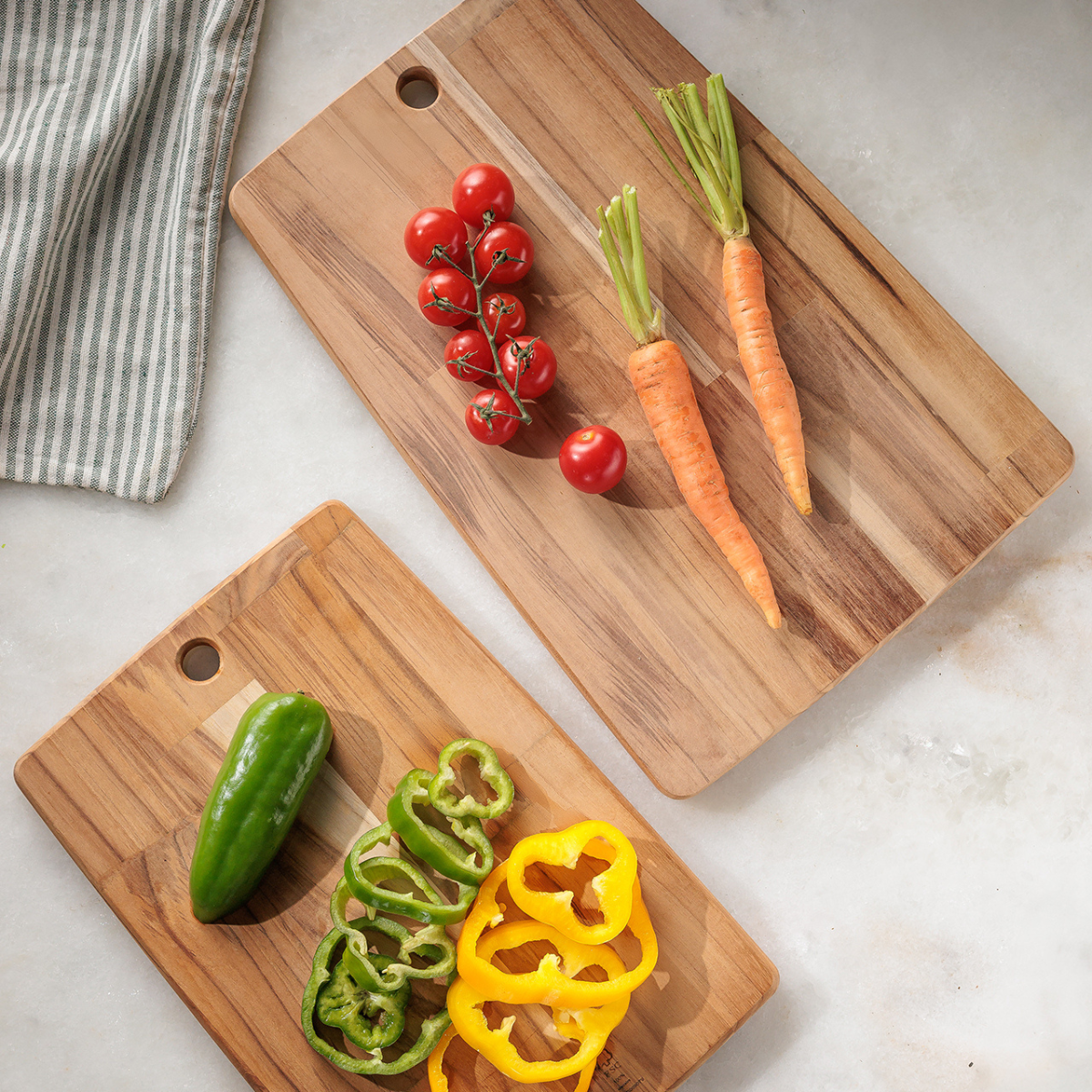 Prepare delicious recipes with the help of the Tramontina Kitchen 34x23-cm Rectangular Teak Cutting Board.