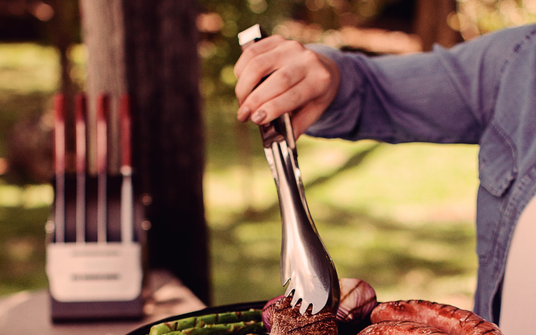 for safely lifting, moving, and adjusting the hot stainless steel cooking grate, ensuring maximum user control and safety during the grilling process.