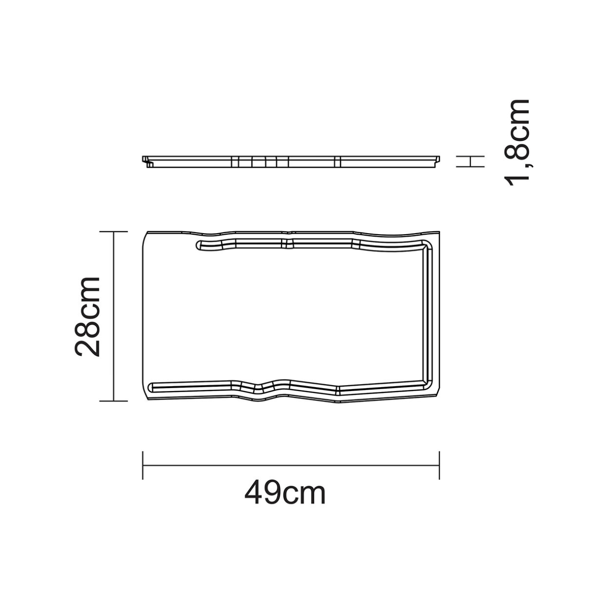 Dimensions: 49 x 28 x 1.8cm