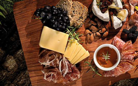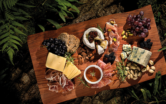 its natural wood finish and fluid design make it an elegant, perfect for beautifully presenting and sharing appetizers, cheeses, and other foods directly at the table.