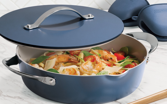 Discover the perfect blend of functionality and elegance. Whether you're sautéing vegetables, searing meats, stir-frying noodles, braising stews, simmering sauces, or slow-roasting your favorite dishes, the Fiora pan handles it all effortlessly. Its heavy-gauge aluminum construction ensures even heat distribution, eliminating hot spots and ensuring perfectly cooked meals every time. Designed for home cooks who value reliability and convenience, this pan is your go-to tool for creating delicious meals with ease. Imagine a pan that not only meets but exceeds your cooking needs.
