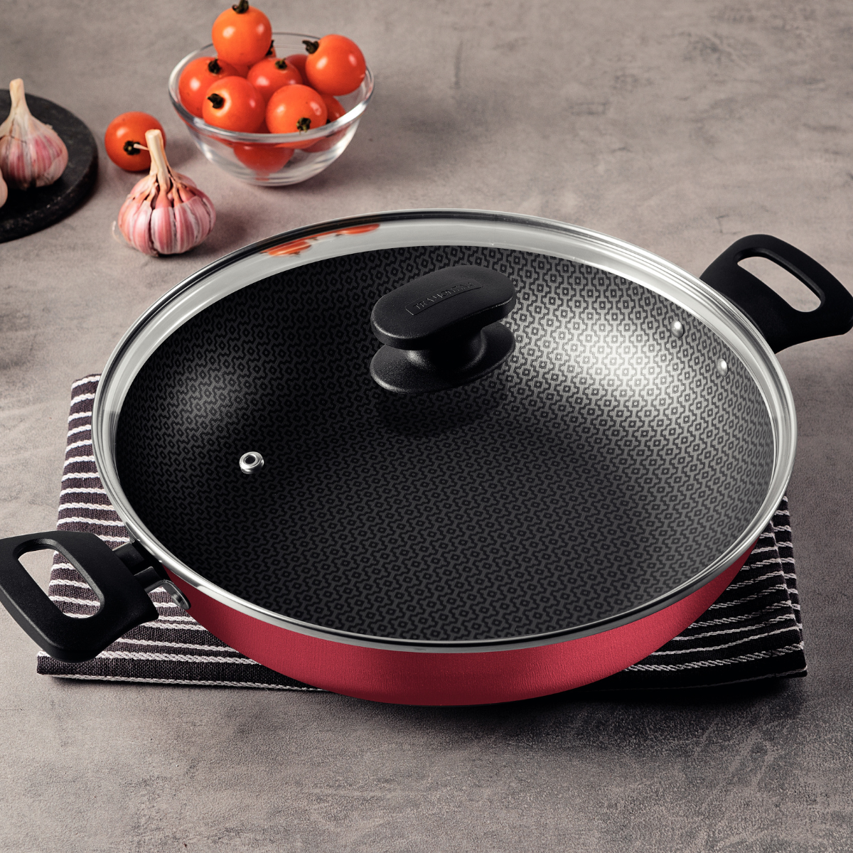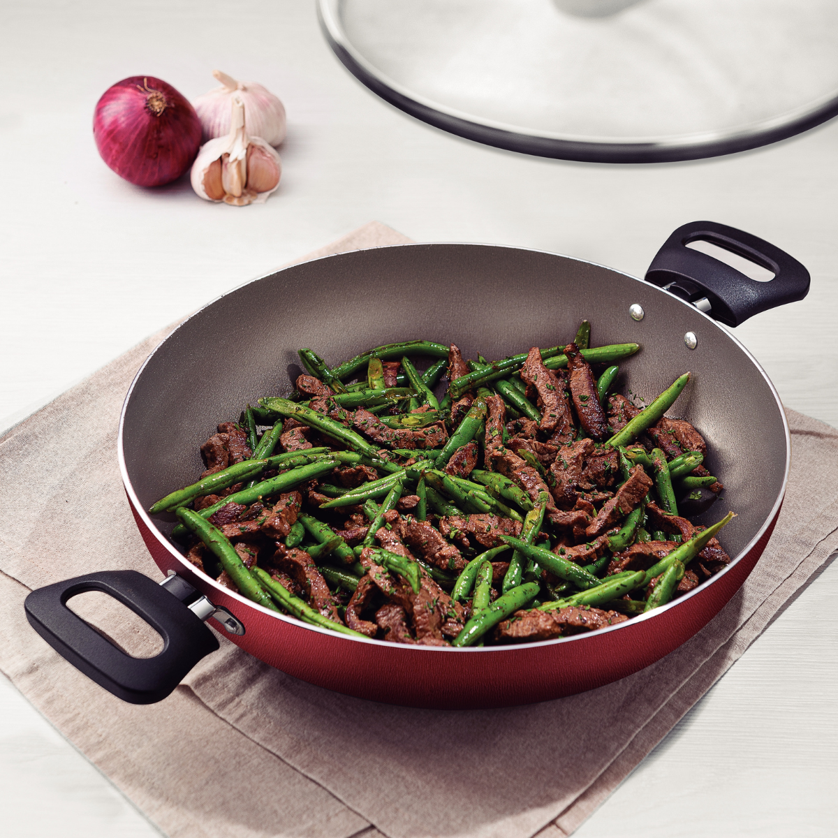 Tramontina Loreto 28cm Wok with Lid, Non-stick - Red / 28cm is backordered and will ship as soon as it is back in stock.