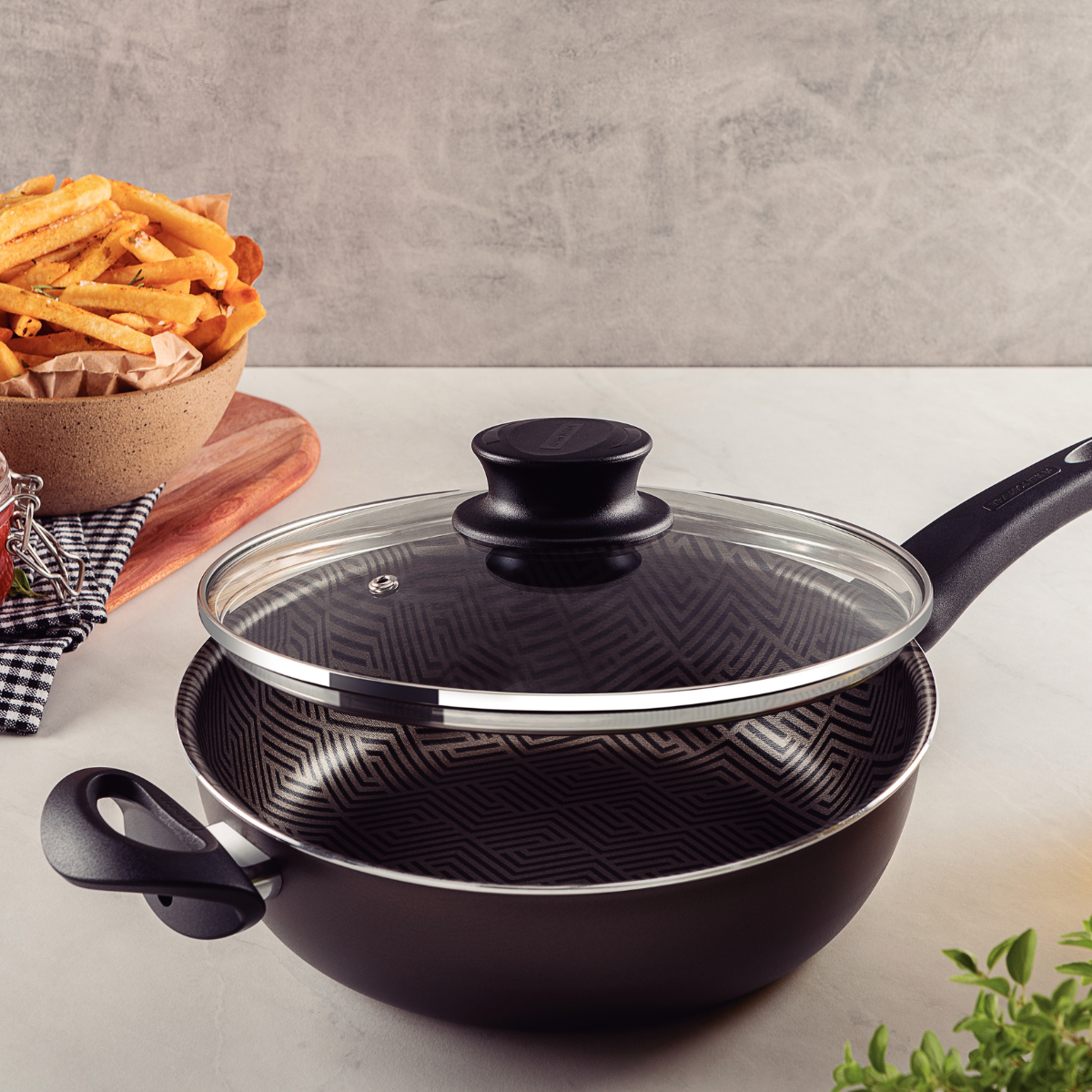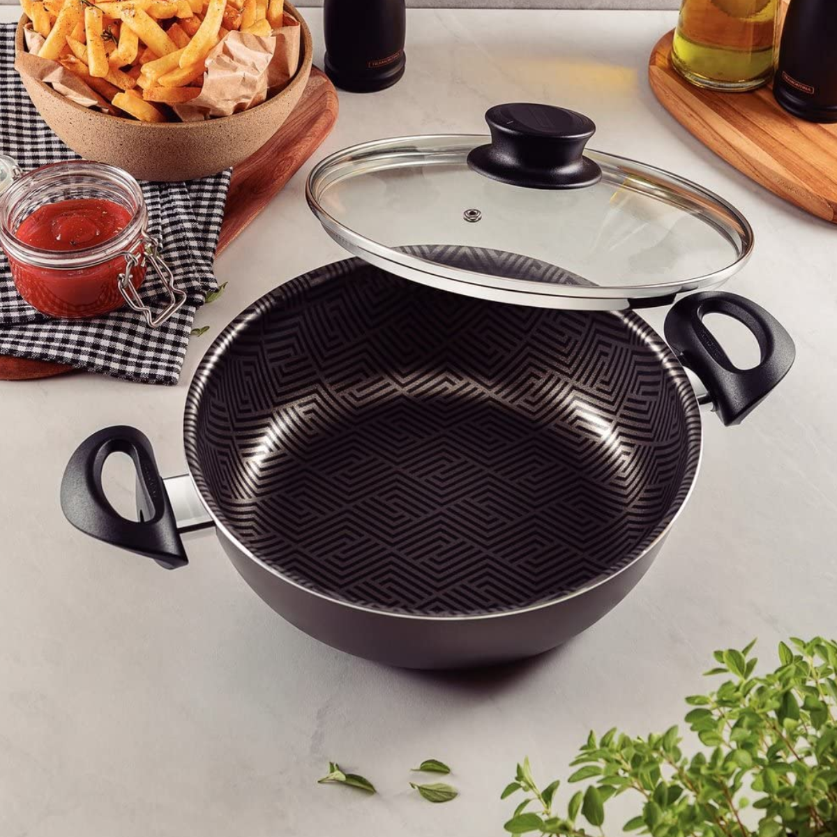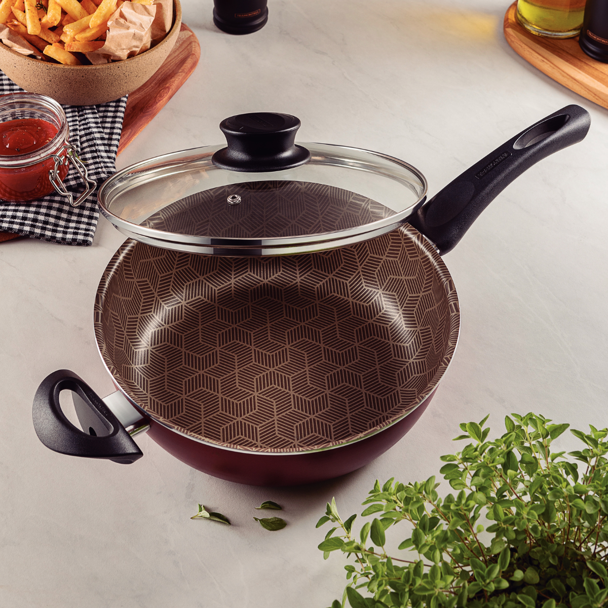 For making dumplings, pastries or other food that need to be deep fried, the Tramontina Paris aluminum skillet is absolutely essential! It is produced in aluminum and interior and exterior Starflon Max nonstick coating, both characteristics that provide fast and uniform cooking of food, preventing them from sticking to the surface. The handle and knob are made of heat-resistant Bakelite and the handle of the glass lid is made of nylon, both materials that do not heat up and offer greater safety and comfort during handling. In addition to all these features, it is very practical and can be taken to the dishwasher!