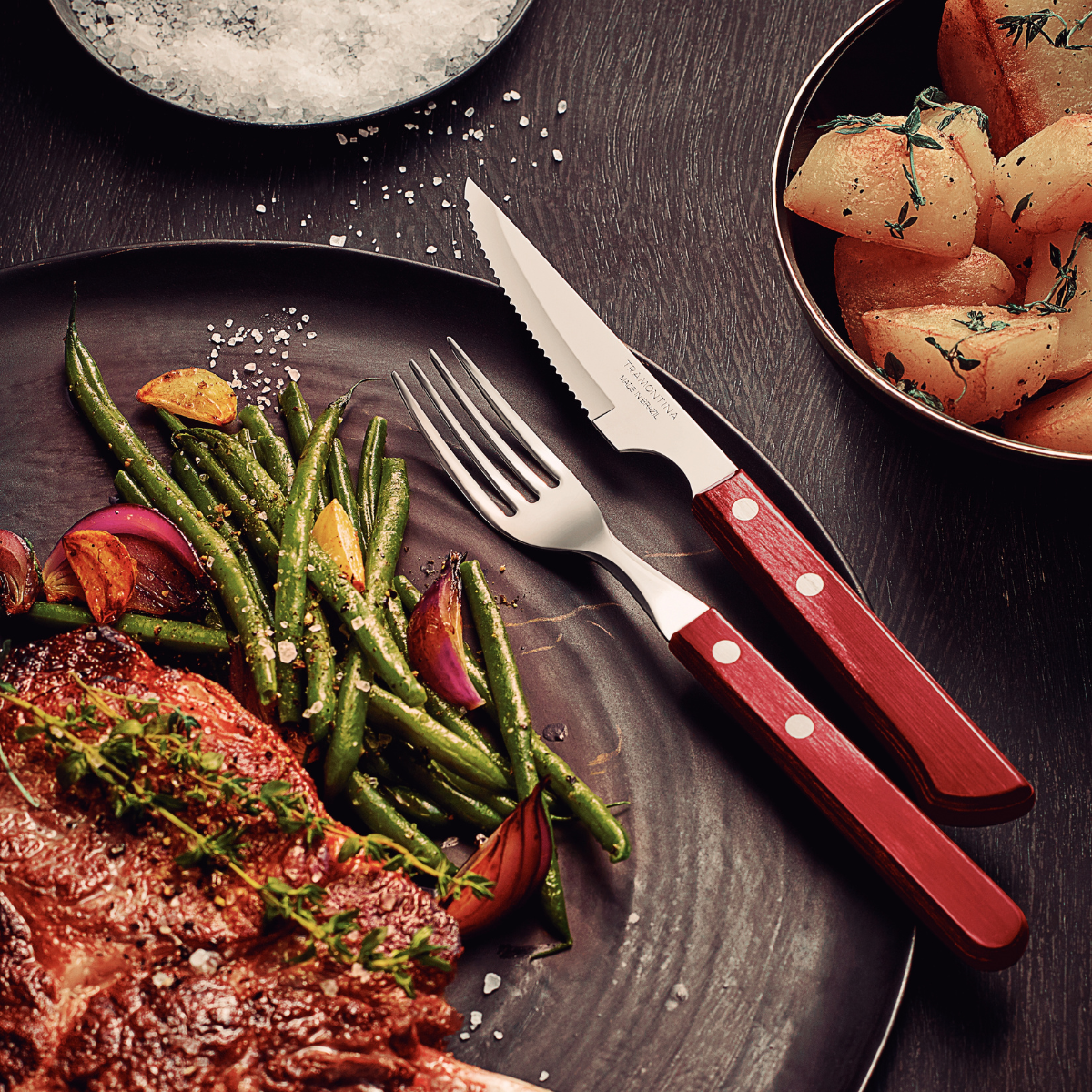 Have only the best for your table and your barbecue with Tramontina's 12-piece stainless steel flatware set. An exclusive set from the Polywood line, including knives and forks made of stainless steel, which provide highly durable cutting edges and prevent misshaping of the pieces. The treated Polywood handles add beauty and sophistication to any occasion. An excellent choice for those who want their barbecue to be unforgettable.
