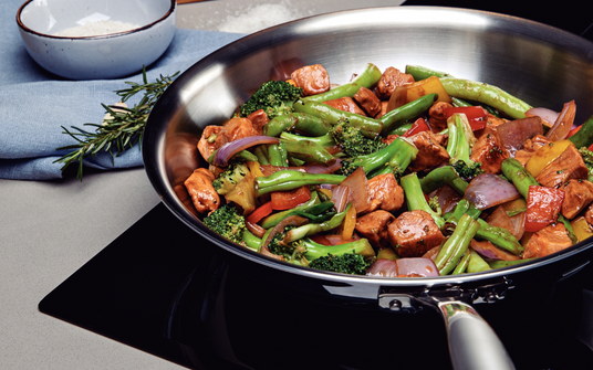Your cooking experiences will get a special touch with Tramontina's stainless steel wok with tri-ply body from the Grano line. With a clean look with no corners, it's very easy to clean and can be washed in the dishwasher on a daily basis. The tri-ply body (stainless steel + aluminum + stainless steel) technology distributes heat evenly for faster cooking, which keeps food warm for longer and it also saves energy. Its modern, sophisticated design with a high-gloss finish makes it a perfect choice to be taken to the table. This incredible pan can be used on the stovetop and in the oven to finish cooking.