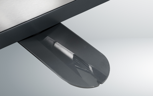 a side-mounted slot specifically designed to hold bulky cutting boards upright and secure, preventing them from taking up valuable space in the main drying racks.