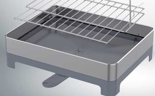 equipped with a built-in drainboard designed direct water away from the rack and into the sink, keeping your countertops bone-dry.