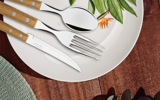 The Tramontina Dynamic 3 piece flatware set is the best choice to ensure functionality and a rustic touch for your table. Consisting of a steak knife, spoon and fork to make meals easier and everyday life more practical. Its items have features that ensure strength and durability!