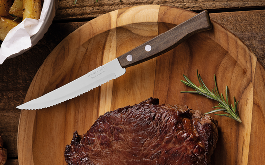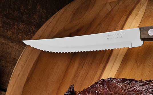With the Tramontina Tradicional 3-piece set of steak and fruit knives with stainless-steel blades and natural wood handles, you will have the right flatware to use at a barbecue and for cutting and peeling fruit for your daily routine. The knives are made with stainless-steel blades, offering a stronger cutting edge, and natural wood handles with aluminum rivets which ensure durability and special charm for your table. Tramontina flatware brings beauty and elegance!