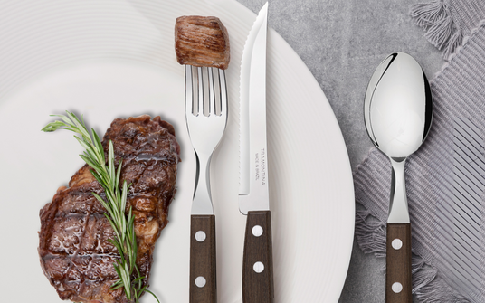 With the Tramontina Tradicional 3-piece flatware set with stainless-steel blades and natural wood handles, you will have the right flatware to use at every meal. With a special rustic style, the handles are made of natural wood with aluminum rivets, with guaranteed durability. The blades are made of stainless steel, the knife offers excellent cutting power and the fork and spoon are strong due to their stamping and thickness. Choose Tramontina flatware and make your meals even more special!