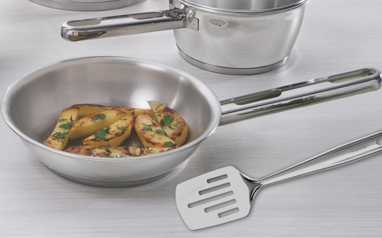 Tramontina's stainless steel skimmer with a glossy finish from the Extrata line will add even more convenience to your kitchen for the preparation of your favorite dishes as well as all the glamour you find in professional kitchens. Made entirely of stainless steel, it is the right choice for those who seek to venture into the culinary universe. The handles in this line have a hole for you to display your favorite utensils, adding them to the dŽcor, giving you easier access on a daily basis.