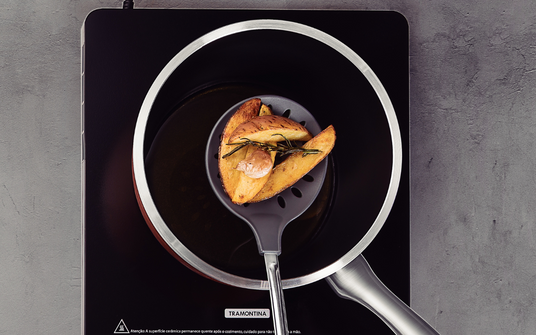 Cooking is delightful, but it can be a problem if you do not have the proper utensils. The Tramontina Utilit‡ Nylon Skimmer with Black Polypropylene Handle, from the Utilitˆ line, is one of those items that are true friends of those who cook. It is ideal for use on nonstick and ceramic coated pans. Nylon utensil that resists up to 180 ¡C (356 ¡F), stainless steel shaft and polypropylene handle, the skimmer is essential in many preparations.