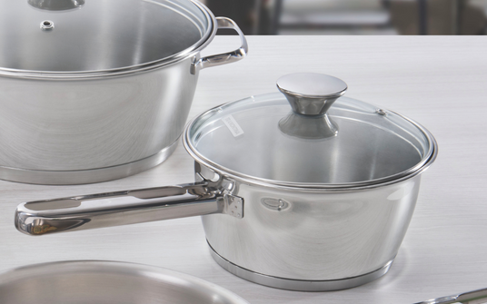 - Use on a low heat so that the food does not stick to the bottom of the pan, the triple body of the pan, made of stainless steel + aluminium + stainless steel, distributes heat uniformly, so that a high heat is unnecessary. Additionally, it is more economical on fuel.
