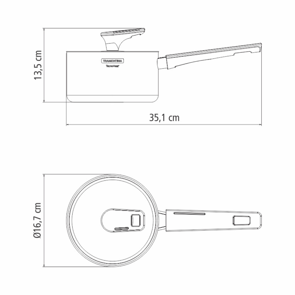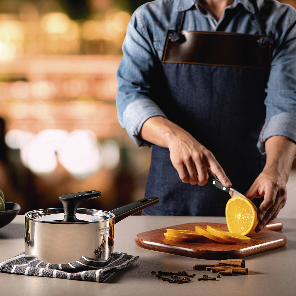 Tramontina's Grano Bakelite saucepan will be the perfect companion for a more beautiful kitchen and more delicious dishes. With a 16 cm diameter and 1.7 L capacity, this saucepan is the ideal size for adding convenience and flavor to your table. It is made with highly durable stainless steel, and features a tri-ply body (stainless steel + aluminum + stainless steel), which distributes heat evenly for faster cooking. The handle and knob are also flame resistant.