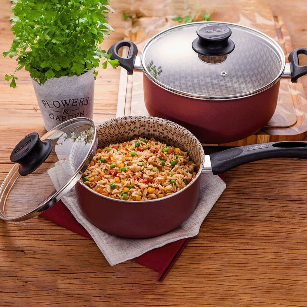 The Paris Line is perfect for those who enjoy preparing many delicious meals for their family and friends. In addition to pans of different capacities, it also features frying pans, skillets and saucepans among others. Made of aluminum and coated with Starflon Max non-stick material inside and out, they ensure uniform cooking and are easy to clean as food does not stick to them. The internal decoration of the pieces represents the delicacy and dedication of cooks. Have Tramontina products in your kitchen and make your routine uncomplicated!