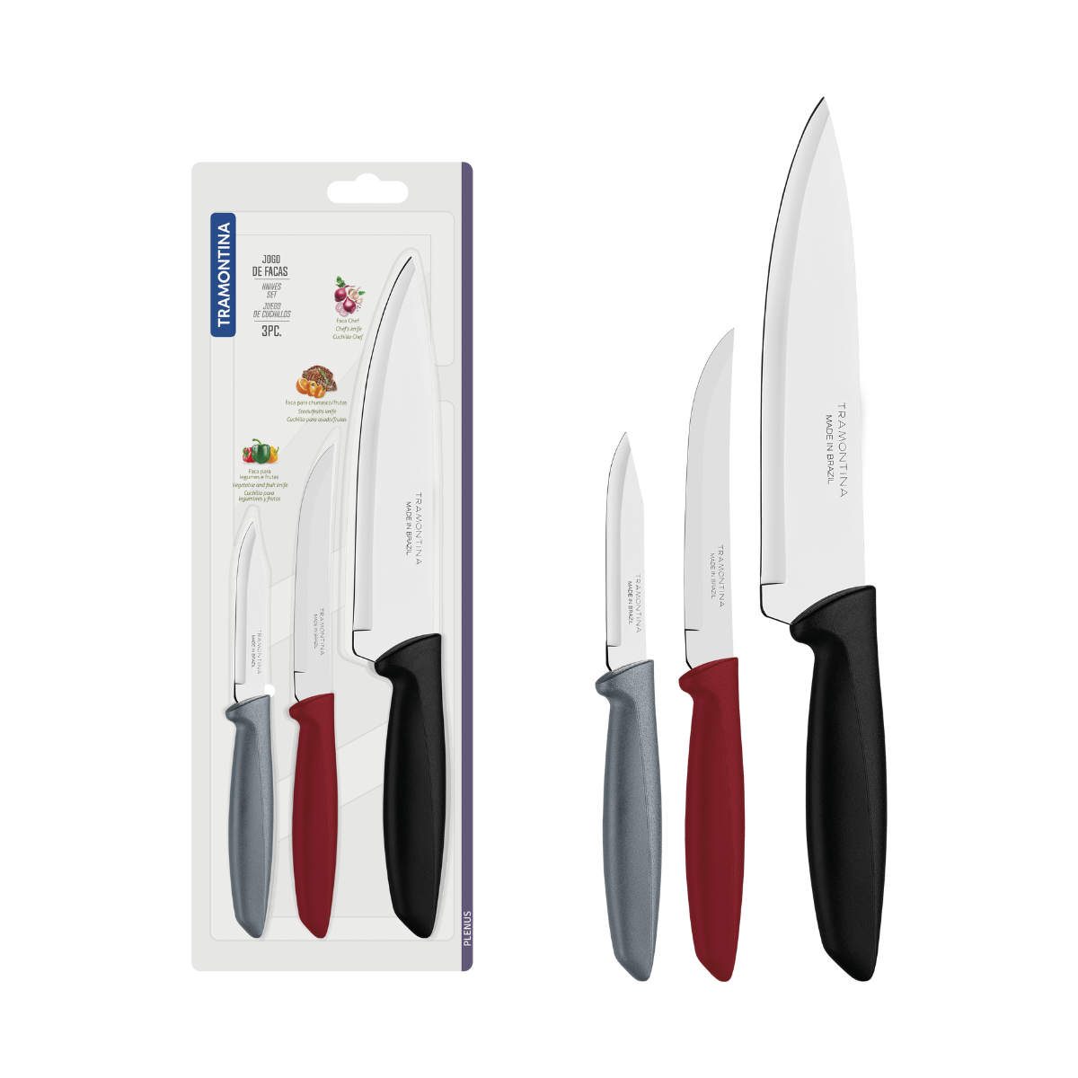 Tramontina Plenus 3 Pcs Multicolour Knife Set, Stainless Steel
